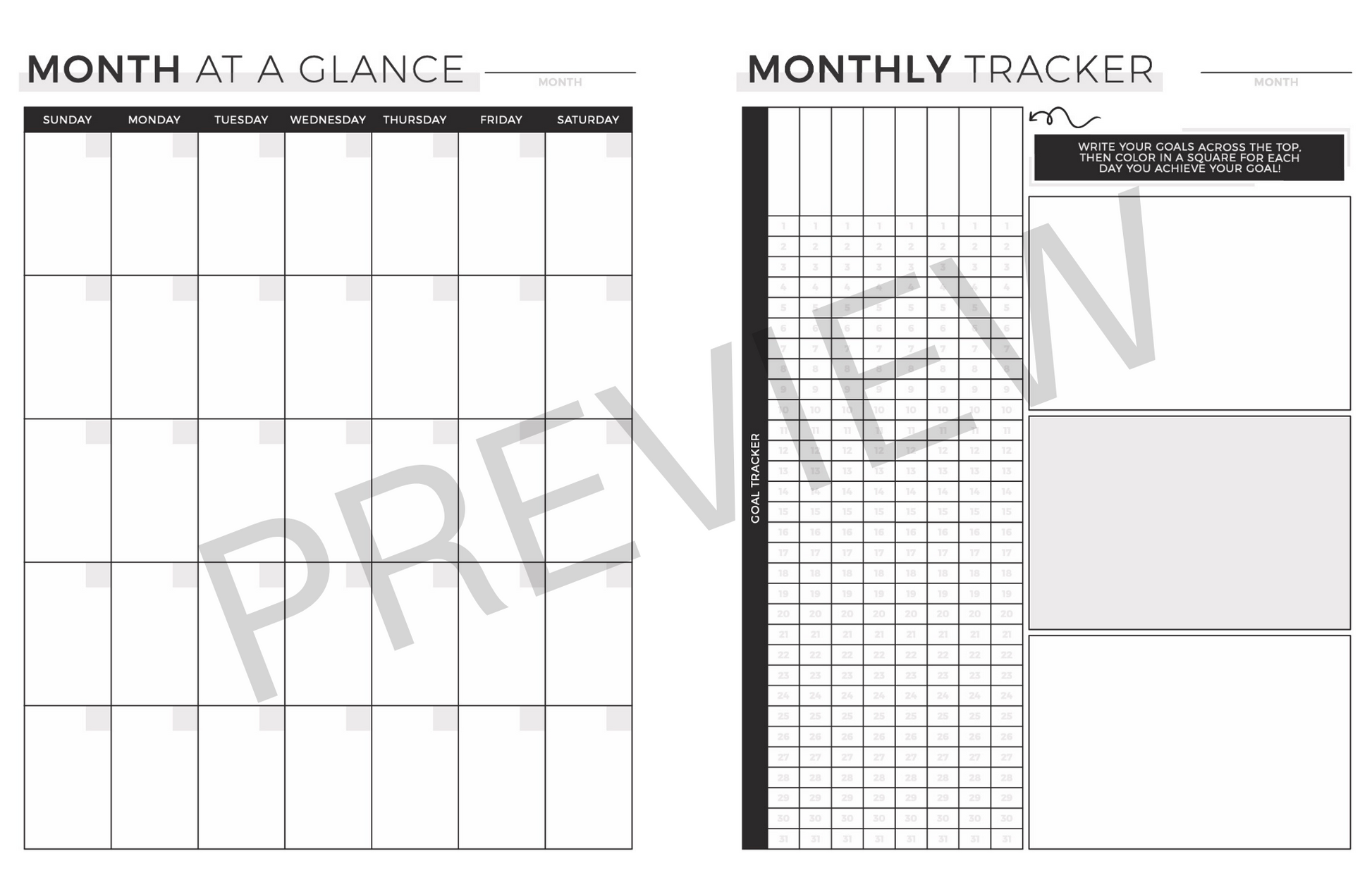 - Includes one complete month of pages. Print more copies to create as many months as you'd like!